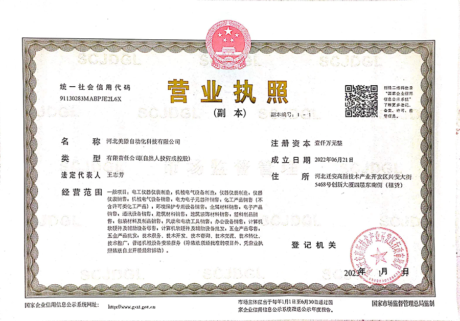 河北美滕自动化科技有限公司成立于2022年06月21日,注册地位于河北迁安高新技术产业开发区兴安大街5468号创新大厦四层东南侧。